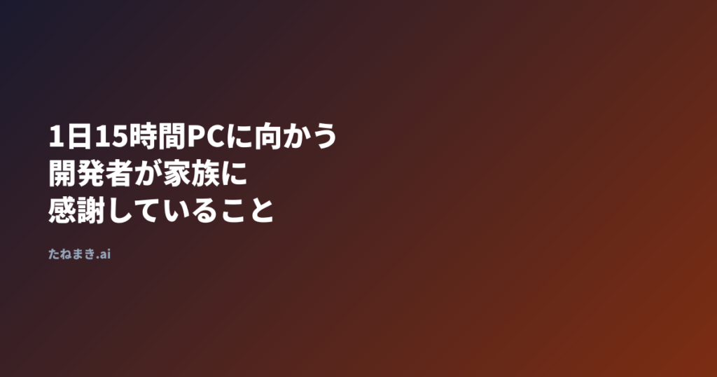 これを書くのは少し恥ずかしいけれど、大切なことだから書いておきたい。自分は1日13〜15時間、PCに向かっている。食事の時間以外、ほとんどずっとだ。週末もほぼない。それが今の生活のリアルだ。でも、それを支えてくれている家族がいる。文句も言わず、... -