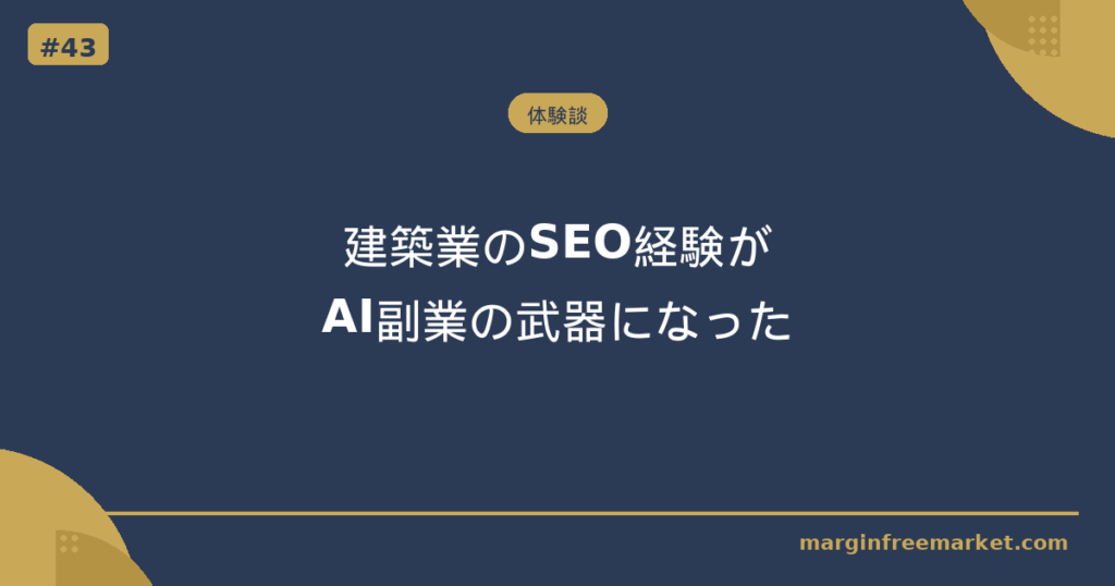 建築業でのSEO集客経験が、AI副業の独自性になった実話。現場経験から生まれるリアルな視点が、AIだけでは書けない記事を作るポイントを解説します。 -
