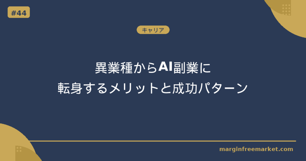 異業種からAI副業に転身するメリットと成功パターンを解説。業界知識がコンテンツの独自性になる仕組み、建築業出身の筆者が実践した転身の3ステップを紹介します。 -